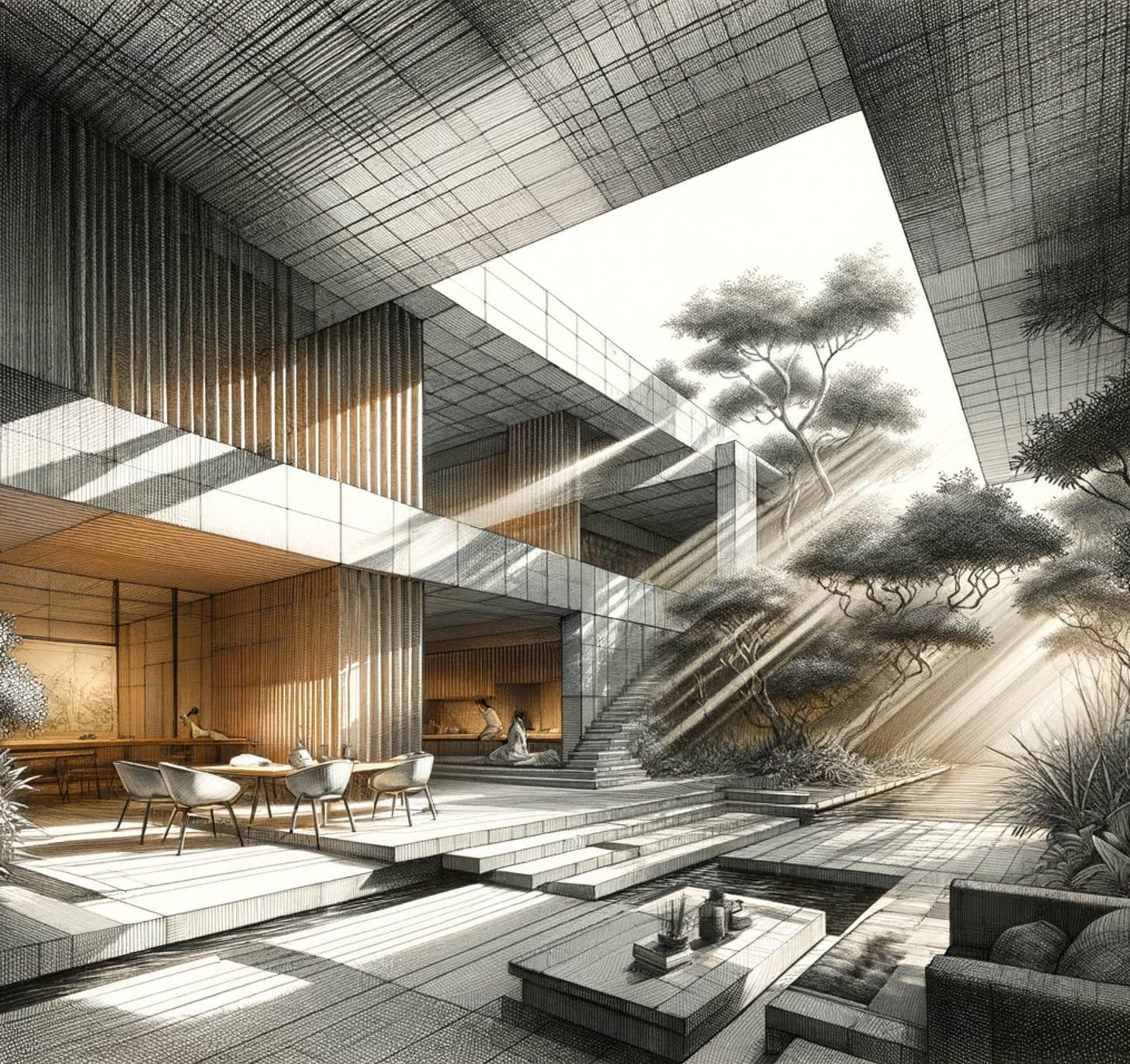 All this leads me to something quite interesting that happened to me in recent days. Due to *reasons*, I find myself using artificial intelligence more and more to perform the "heavy lifting" of various graphic elements. I took a few courses in prompt engineering and learned how to fine-tune the best engines today to do really interesting things. For "fun," I built a prompt for GPT-4o and asked it to create a synthesis of the central ideas from Tanizaki's and Bachelard's books and create a simulation of a space designed according to their shared spirit.